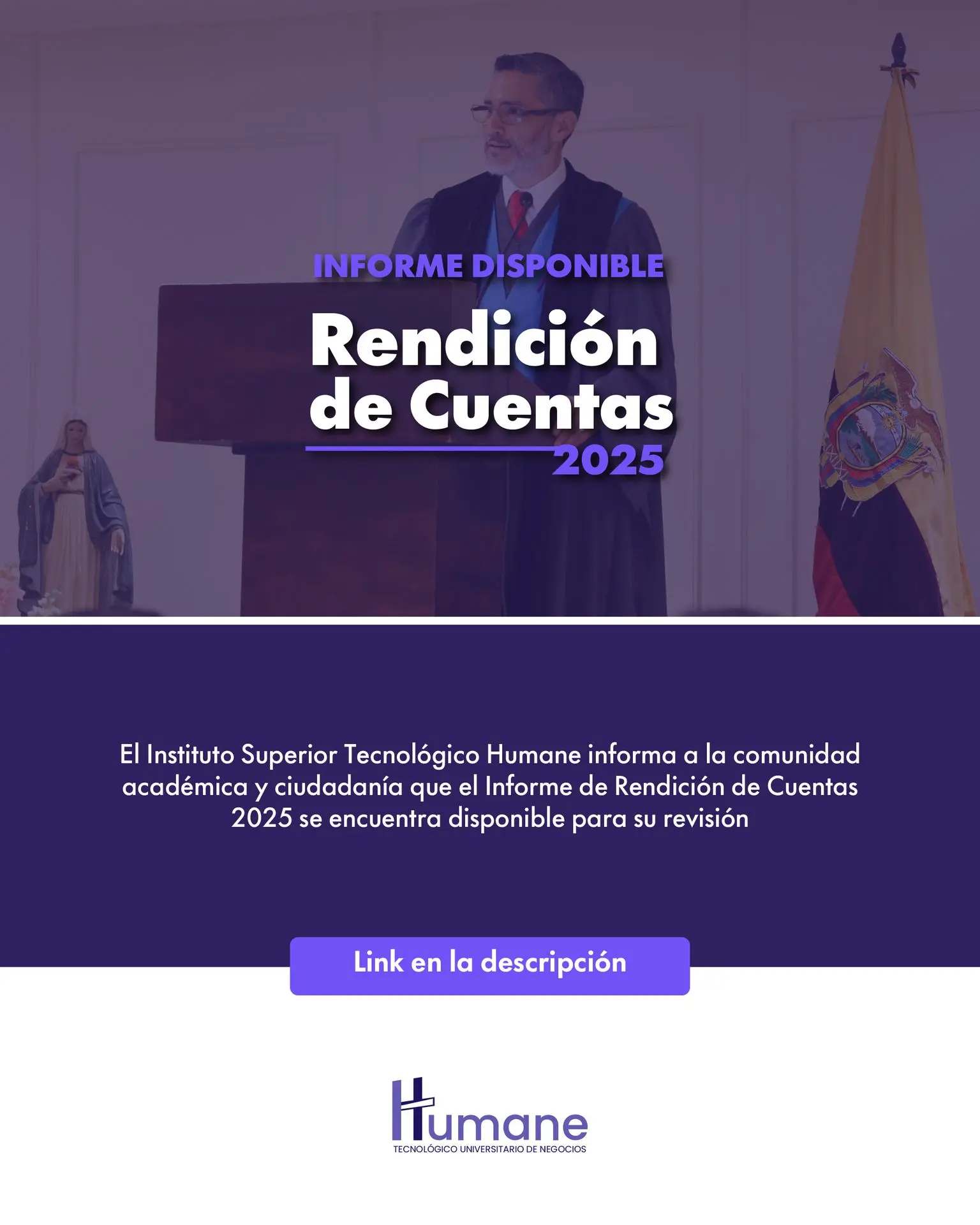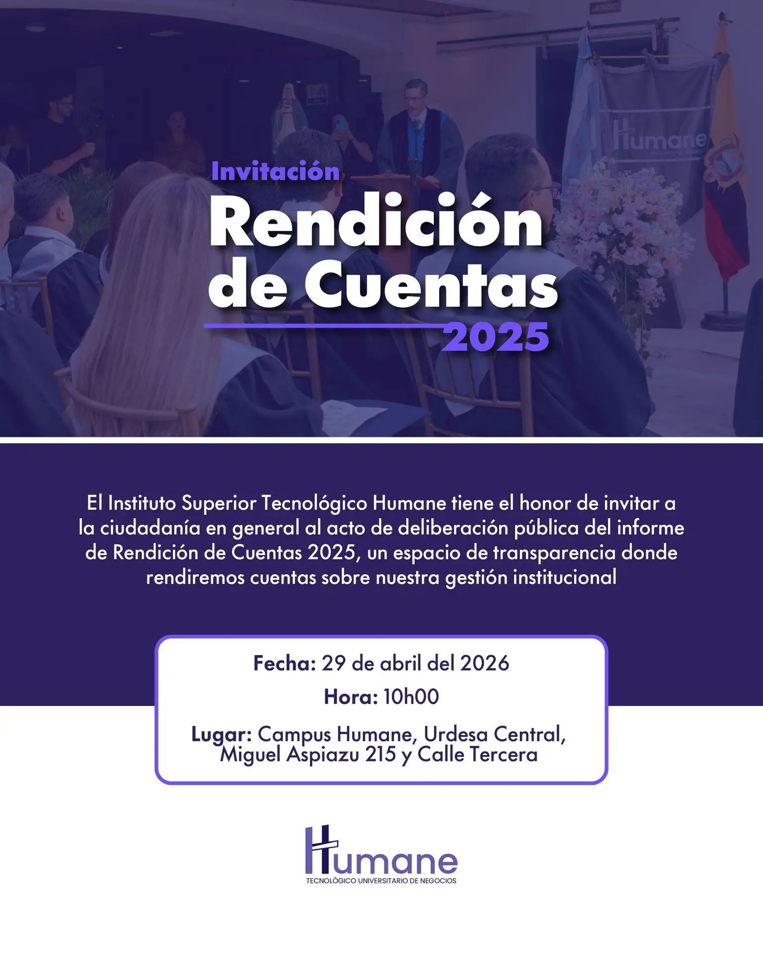 Este espacio ha sido habilitado para garantizar el acceso a la información y la participación ciudadana en el proceso de rendición de cuentas del Instituto Superior Tecnológico Humane.
