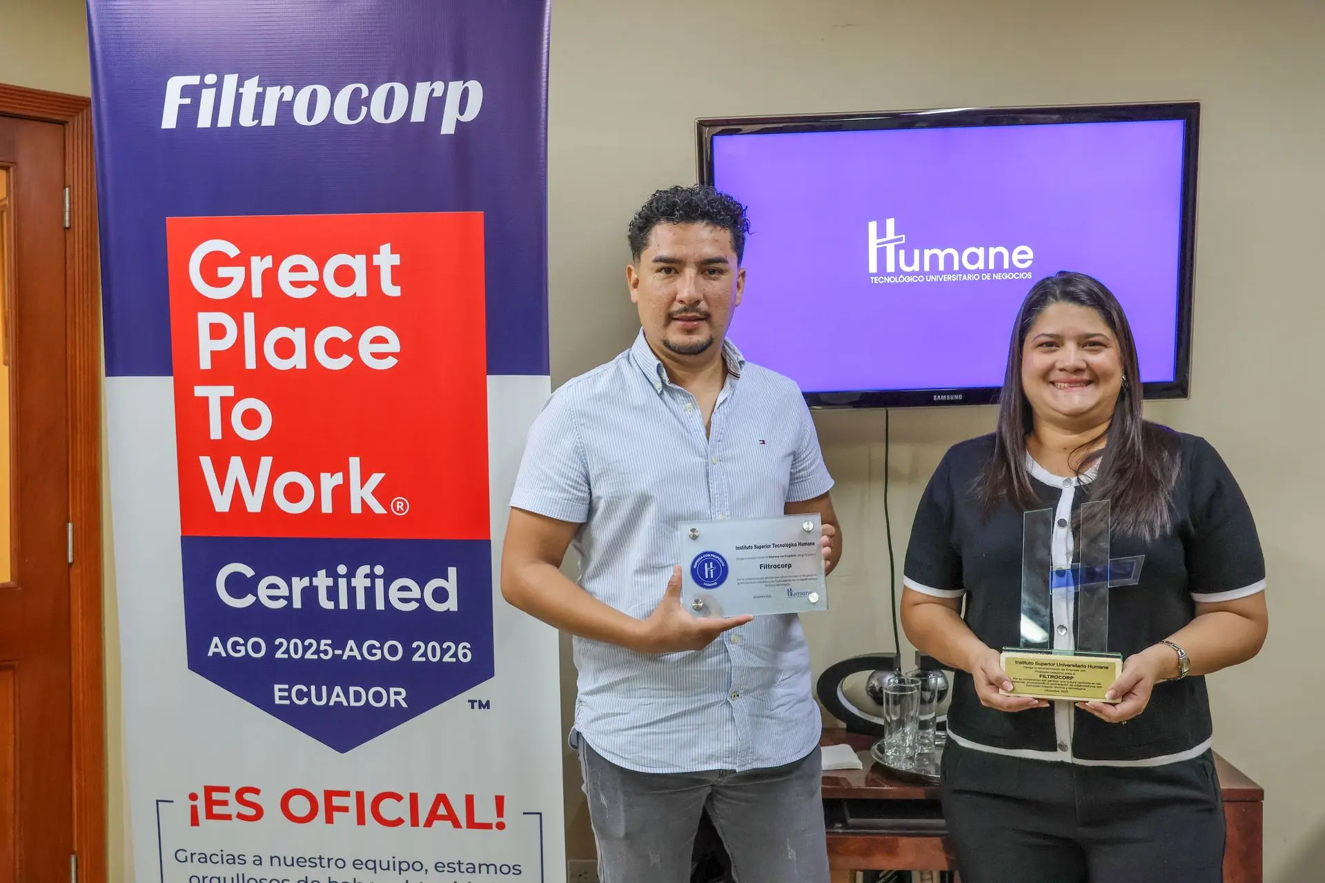 El Instituto Superior Tecnológico Humane otorgó a Filtrocorp el Sello Empresa con Propósito – Categoría Plata, en reconocimiento a su compromiso con la empleabilidad estudiantil, el fortalecimiento de la marca empleadora y la construcción de una cultura organizacional centrada en las personas.