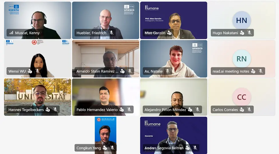 El Instituto Superior Tecnológico Humane participó en una iniciativa internacional impulsada por UNESCO-UNEVOC orientada a la integración ética y estratégica de la Inteligencia Artificial en instituciones de educación técnica y profesional (TVET), un espacio de diálogo global que reúne a académicos para reflexionar sobre los desafíos y oportunidades que plantea la transformación digital en la educación técnica.
